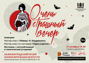 В программе: мастер-класс «Певица» по мотивам произведения Василия Кандинского, мастер-класс по скетчингу «Череп в цветах», аквагрим, тематическая фотозона, разные развлечения с призами и подарками. «Очень страшный вечер» пройдет в музейном лофте.