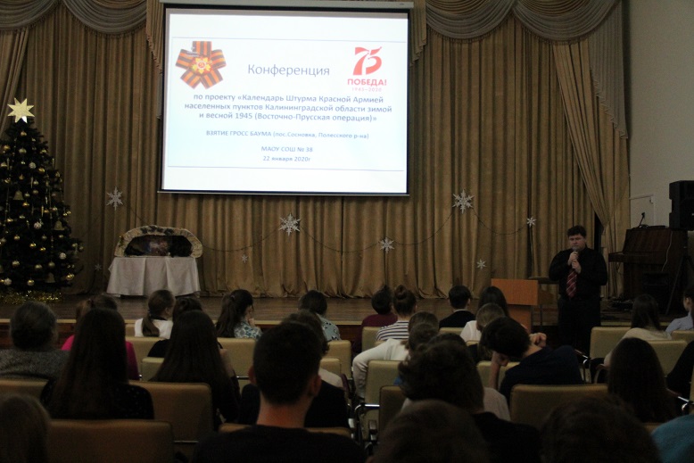 22 января 2020 года в школе № 38 прошла конференция в рамках городского проекта «Календарь Штурма Красной Армией населенных пунктов Калининградской области зимой и весной 1945 (Восточно-Прусская операция)».