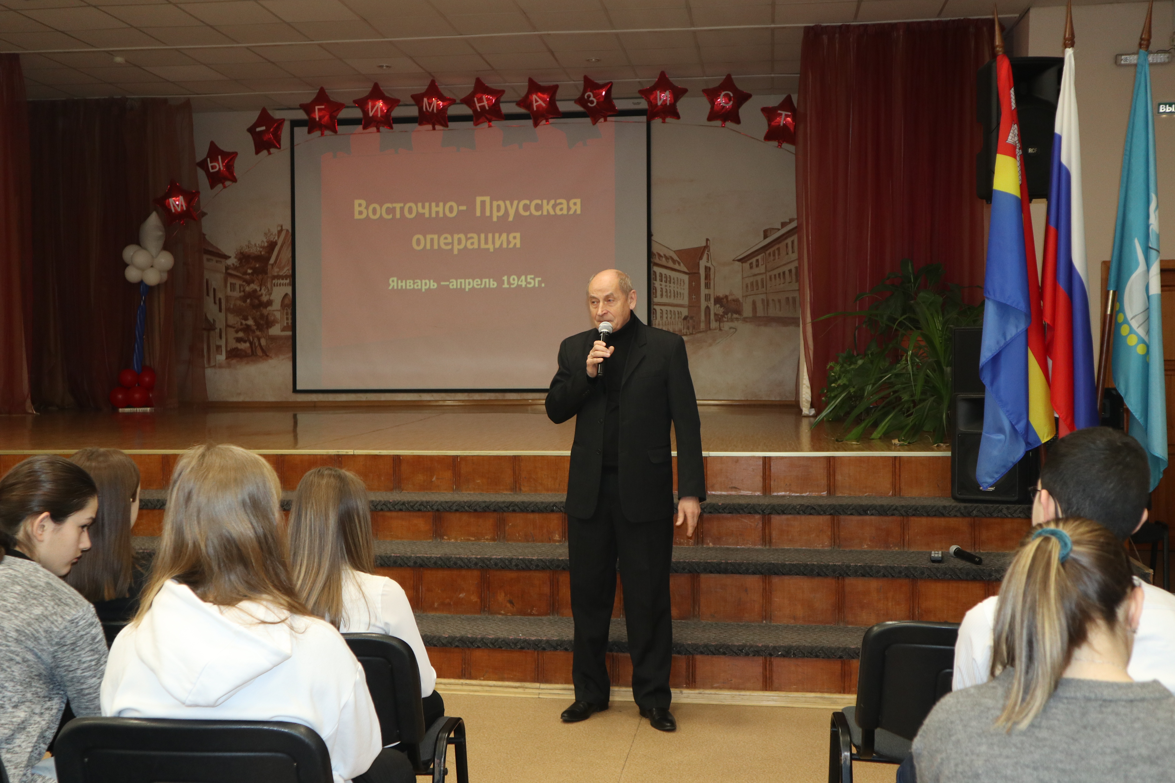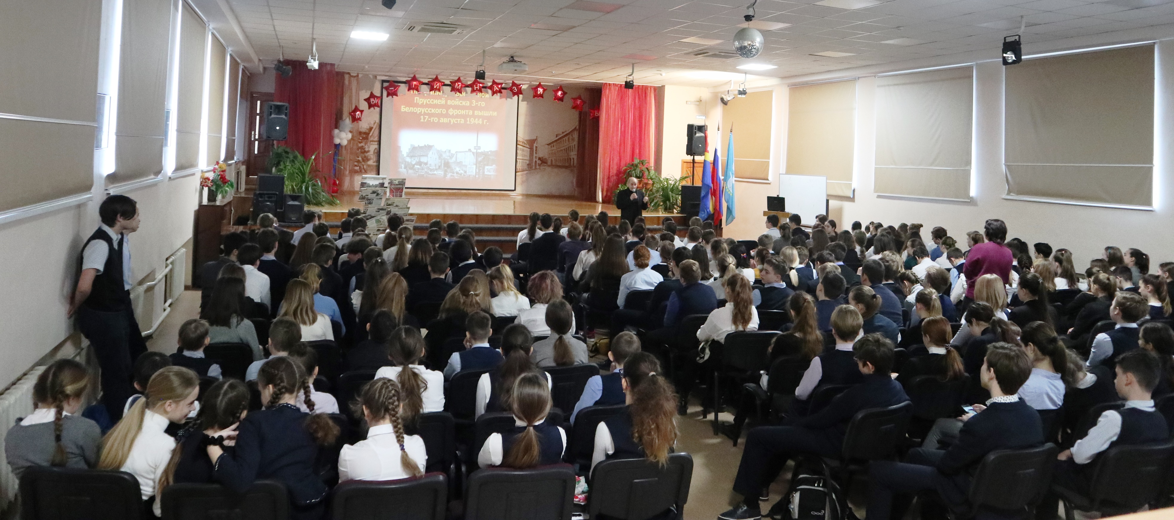 В этот знаменательный день в актовом зале гимназии учащиеся 7-8-х классов прослушали отчет объединения «Краеведы Балтики» о поездке в пос. Коврово и пос. Рощино, посещении историко-художественного музея и сбора исторического материала.