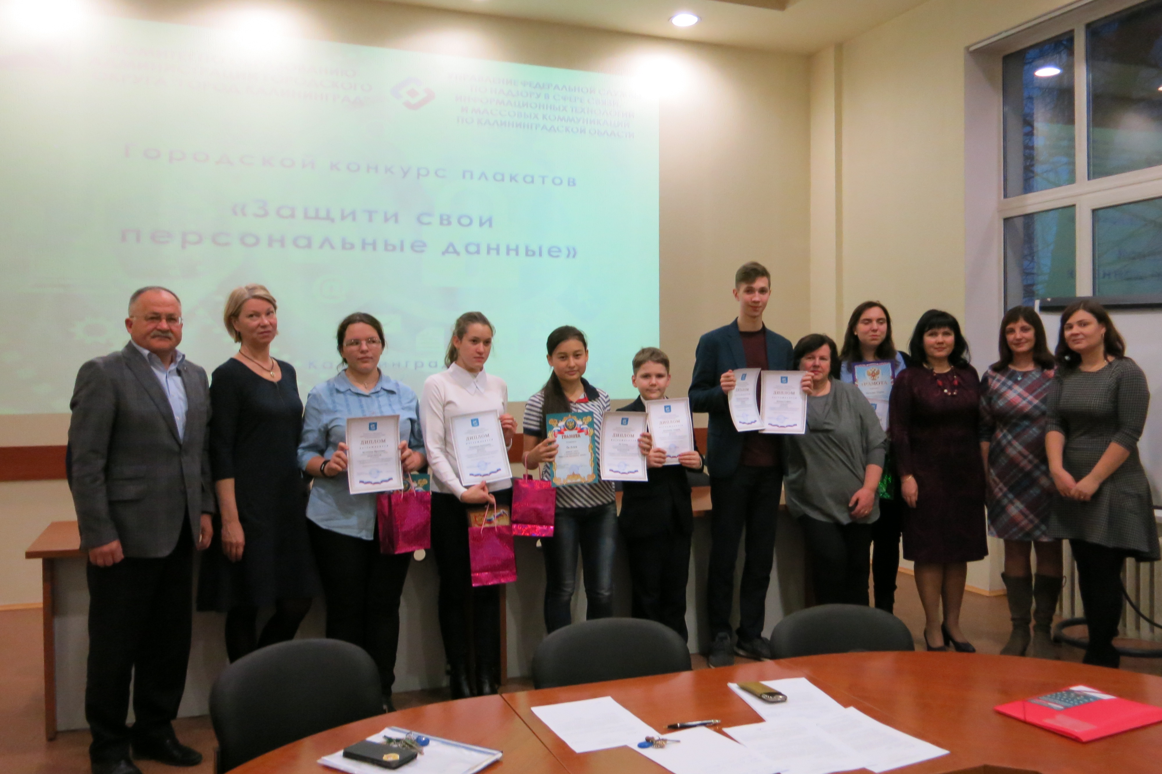 25 декабря в комитете по образованию состоялась торжественная церемония награждения победителей и призеров первого городского Конкурса плакатов среди обучающихся «Защити свои персональные данные». Организаторами Конкурса выступили комитет по образованию администрации городского округа «Город Калининград» и Управление Федеральной службы по надзору в сфере связи, информационных технологий и массовых коммуникаций по Калининградской области. Концепция Конкурса состоит в том, чтобы способствовать формированию гражданской позиции и социализации обучающихся, активизации их творческой деятельности и поддержке социально-значимых идей и проектов школьникZA287190907HK ов. С приветственным словом к победителям конкурса обратились Гривусевич Галина Владимировна, начальник управления общего образования комитета по образованию, Шахов Игорь Викторович, руководитель Управления Роскомнадзора по Калининградской области, Курпатова Жанна Николаевна, начальник отдела по защите прав субъектов персональных данных Управления Роскомнадзора по Калининградской области. Дипломы комитета по образованию и памятные призы Управления Роскомнадзора по Калининградской области были вручены победителям Конкурса: 3 место: – Кошма София, МАОУ гимназия № 1 г. Калининграда; – Хлудеева Ангелина, МАОУ СОШ № 6 с УИОП г. Калининграда. 2 место: – Дупленко Андрей, МАОУ гимназия № 1 г. Калининграда; – Мелихов Александр, МАОУ гимназия № 1 г. Калининграда 1 место: – Ли Агата, МАУ ДО ЦТР и ГО «Информационные технологии» г. Калининграда; – Беленова Ярослава, МАОУ СОШ № 6 с УИОП г. Калининграда. Абсолютным победителем Конкурса, обладателем гран-при стала Мельник Мария, МАОУ гимназия № 32 г. Калининграда. Особые слова благодарности были сказаны в адрес и.о. руководителя ЦИТОИСа Е.А. Андреевой за создание условий и содействие в проведении Конкурса. Поздравляем победителей первого городского Конкурса плакатов среди обучающихся «Защити свои персональные данные» и надеемся продолжить сотрудничество с Управлением Роскомнадзора Калининградской области при проведении последующих конкурсных мероприятий!