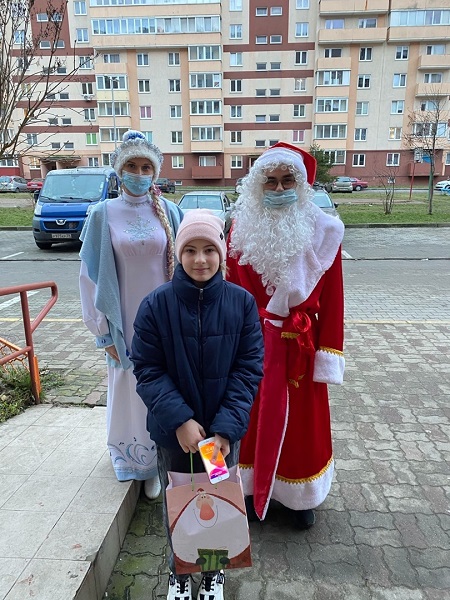 Ввиду объективных ограничений в связи с пандемией, волонтеры поздравляют ребят в условиях соблюдения социальной дистанции на свежем воздухе или на лестничной площадке.