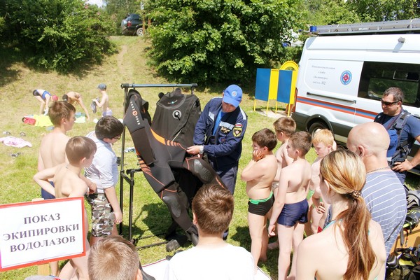 Мероприятие началось со спортивной разминки, а затем участники на себе испытали, какого быть спасателем: бросали спасательный круг на точность, перемещались по воде в надувной лодке на веслах, изучали водолазное снаряжение, а также освоили правила оказания первой медицинской помощи.
