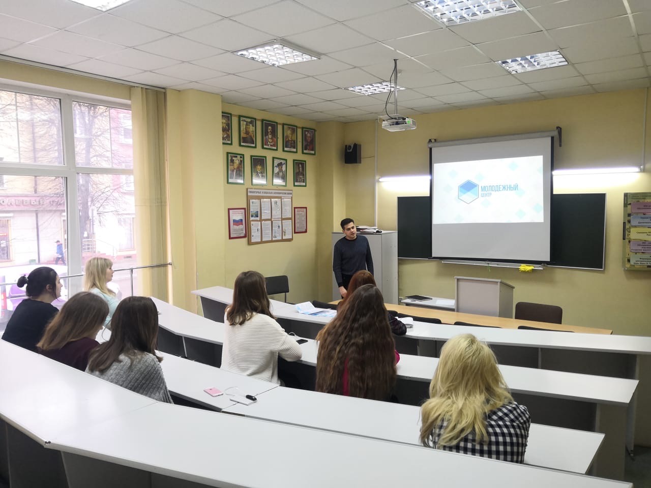 В ходе встречи обучающимся КИЭ была презентована специфика работы центра, его структурная составляющая и содержание мероприятий, реализующихся на базе МАУ «Молодежный центр», в том числе деятельность проектного отдела.