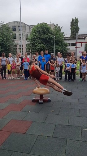 С показательными номерами выступали спортивные гимнасты и спортивные акробаты, разминку со всеми участниками провела тренер городской школы по спортивной гимнастике Кристина Логвин.
