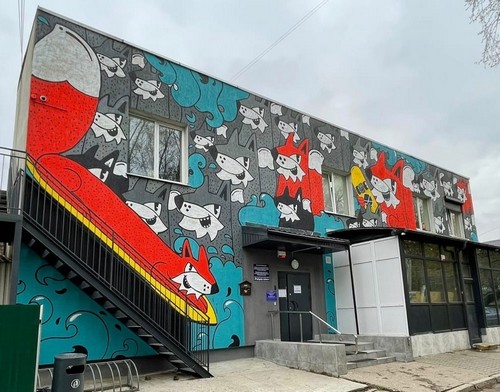 Теперь найти вход в обновлённое пространство молодёжного клуба не составит труда, его украшают широко известные «Лисы». Данная композиция - самая большая работа в регионе из серии.
