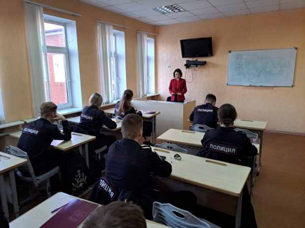 Курсанты Калининградского филиала Санкт-Петербургского университета МВД России пообщались с начальником отдела организационно-правового обеспечения и безопасности регионального Министерства молодёжной политики Натальей Буровой в формате «Открытого диалога».