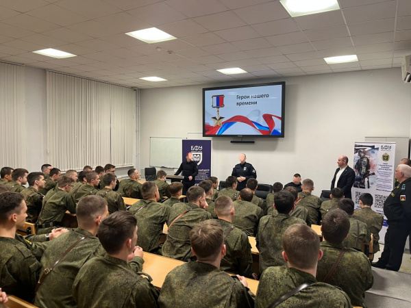 Особый интерес участников встречи вызвали истории подвигов наших бойцов, которыми поделился один из гостей-участник в СВО. Также он ответил на вопросы студентов о том, страшно ли участвовать в боевых действиях, как обстоят дела с обеспечением на фронте, привёл примеры поступков, за которые представляют к награждению медалью «За отвагу». В завершение встречи слушателей ВУЦ пригласили на службу в ОМОН и предложили провести экскурсию по базе и музею спецподразделения.