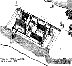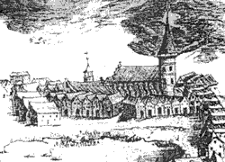 Кирха М.Мажвидаса в Рагайне. Гравюра на меди, XVII в. Автор Фогель |