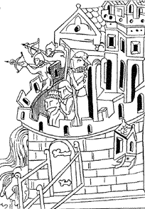Оборона польского города. Миниатюра из рукописи XIV в. (Н.И.Шавелева.Польские латиноязычные средневековые источники. М., 1990) |
