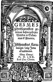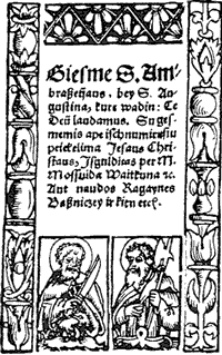 "Песня святого Амбросиуса и святого Августина" 1549 год в переводе Мартина Мосвида Ваиткунуса. |
