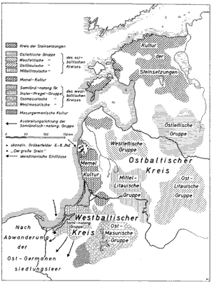 Появление этих украшений на восточном побережье Балтики вряд ли можно объяснить непосредственными контактами местного населения с франками или Ирландией. Скорее всего, они попали сюда через посредничество датчан, где на протяжении ранней эпохи викингов каролингское влияние было достаточно сильным и отразилось на появлении как отдельных типов вооружения, так и украшений. Случайный характер этих находок не позволяет сделать вывод о существовании каких-либо датских колоний на территории балтов в это время. Вместе с тем, упоминание в «Житии Св. Ансгария» трофейных украшений и оружия, изъятых куршами у датчан, представляется весьма правдоподобным как в связи с упомянутыми вещами, так и одиночными находками мечей каролингского производства из Кенигсберга [Menghin 1980:227-171, Liste I nr 12].