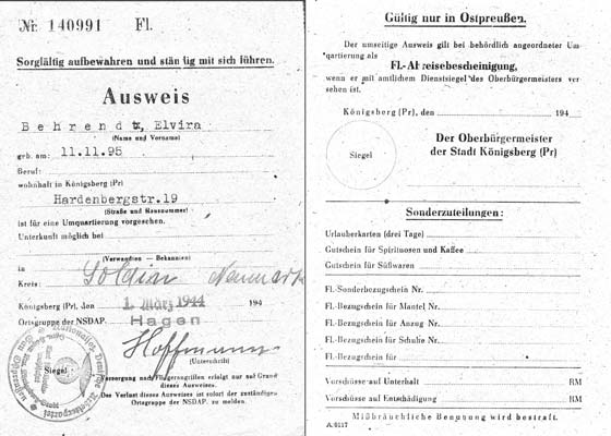 Удостоверение для обмена квартир и переезда в пределах Восточной Пруссии