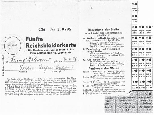 Карточки на одежду для детей от 3-х до 15-ти лет. 1942 и 1944 годы. (архив К. Беренд)