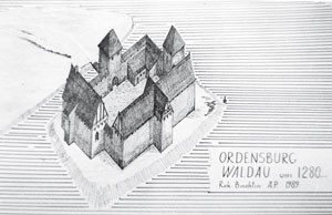ВАЛЬДАУ (Waldau) - пос. Низовье. Селение впервые упомянуто в 1258 году как относящееся к приходу церкви в Арнау. Посёлок лежит восточнее Кенигсберга. Здесь уже в 1264 году два замландских знатных прусса присягнули на верность Тевтонскому ордену и получили разрешения на закладку крепости. Эта крепость с 1457 года служила временной летней резиденцией гроссмейстеру Тевтонского ордена. Около 1860 года замок Вальдау был перестроен для учебных целей: в нём расположилась сельскохозяйственная высшая школа, основанная в 1858 году. В 1868 году эта школа переехала в Кенигсберг. С 1870 года в Вальдау стал функционировать педагогический семинар, который несколько ранее объединили с Королевским приютом. После Первой мировой войны учительский семинар прекратил свою деятельность.
