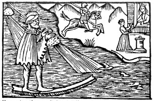 Колдун с помощью заклинания переплывает озеро. Из «Восточно-Прусские легенды»