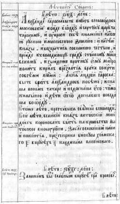 Распечатку электронной версии копии «Летописи» предоставил для «Балтийского альманаха» Государственный архив Калининградской области (фонд 3-3). Электронная копия «Летописи» прислана в Калининград из рукописного отдела МГАМИД города Москвы. (ф.181, кн.12, л.251 об.).