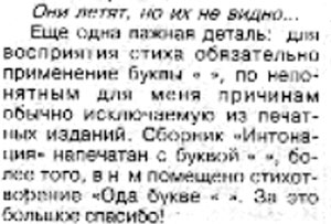 После этого хочется задать риторический вопрос: неужели в военные 1942 и в 1944 годах было нечем более заняться, чем заботиться о сохранении буквы "Ё"? Однако, увы, сейчас даже в литерах уважаемой газеты "Страж Балтики" для буквы "Ё" не нашлось места. Поэтому бездушный компьютер, не зная как поступить, заменил букву "Ё" на пустоту. Здесь воспроизводится фрагмент статьи из газеты "Страж Балтики" за 15 марта 2008 года с курьёзным случаем по поводу буквы "Ё".
