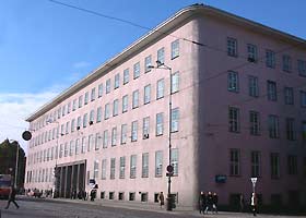 Единственной интересной чертой этого блока стал вход/выход на Ганза-плац (пл. Победы). Большой темный проем поддерживался мощными колоннами. Сквозь него истцы и ответчики попадали в просторный холл со стеклянной стеной, откуда отрывался вид на площадь. Холл был оформлен колоннами со слегка намеченными украшениями капителей. Экономно были декорированы и лестницы.