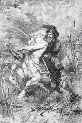 Фауст бродит среди грифов, сфинксов, сирен. Он скачет на кентавре - человеко-коне. Он видит нимф. Он встречается с древнегреческими философами. Можно сказать, что похождения Фауста увенчались успехом. Он встретил в этом «классическом» мире Елену Прекрасную. От сожительства Фауста с Прекрасной Еленой появился на свет сын Эвфорион. (Имя Эвфорион является заимствованием. Так звали сына Елены Прекрасной и древнегреческого героя Ахилла -ну, помните такого с выражением «ахиллесова пята», который был весь совершенно неуязвим, кроме пятки, за которую его держала мать, морская богиня Фетида, окуная сыночка в священные воды Стикса. Кроме того, критики считают, что Эвфорион - аллегория личности поэта Байрона). Фаустовский Эвфорион заканчивает жизнь наподобие легендарного Икара: он взмывает в небо и падает вниз. Всё античное внезапно исчезает, в том числе и Прекрасная Елена.