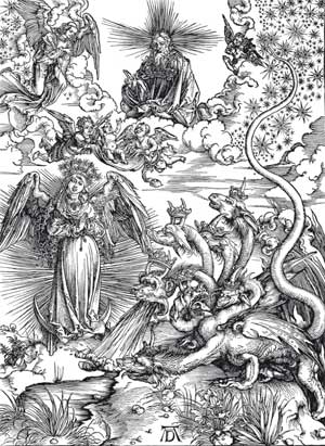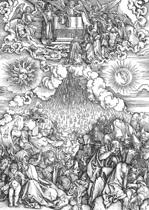 Немецкий художник Альбрехт Дюрер (1471-1528) - крупнейший живописец эпохи Возрождения. Среди его работ обращает на себя внимание серия гравюр на тему «Апокалипсиса», созданная в 1498 году. В фантастических картинах А.Дюрер отразил глубокие чувства в ожидании грозного возмездия за пороки и злодеяния. Гравюры А.Дюрера, наполненные таинственными символами, требуют внимания для прочтения сокрытого смысла. В пугающих картинах Страшного суда А.Дюрер решал принципиальную проблему спасения души с позиций бескомпромиссности: грехи не снимаются, жить нужно по Библейским заветам.