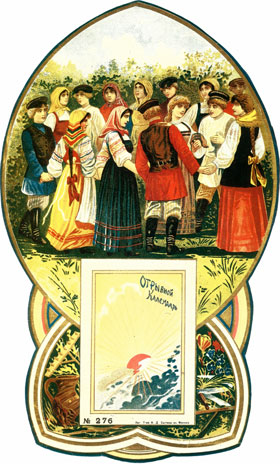 Народные календари, выпущенные издательством И.Д. Сытина (1851-1934) пользовались большой популярностью в России на рубеже 19-20 веков. Эти календари представляли собой лубочные картинки, столь любимые тогдашней публикой. Незатейливые рисунки являют собой сценки из жизни или виды городов и весей. Они являются живописными свидетелями последних мирных дней перед потрясениями мировой и гражданских войн. В "Преголе" воспроизведены картинки из издания The Sytin "Popular Calendar" (Издательство "Аврора", Ленинград, 1989).