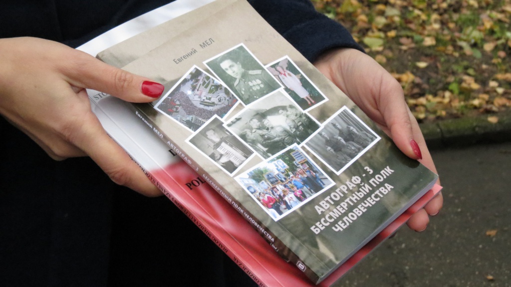 Организационную помощь в проведении этого визита оказала администрации Калининграда. «Три года назад соотечественники, которые проживают в Польше, пригласили меня на свое собрание, которое проходит раз в год в Варшаве. Там я познакомилась с необычной семьей. Они проживают в Польше и при этом чтят свои русские корни. Помнят о подвигах русских людей и русской культуре, - рассказала начальник отдела международных связей Дина Шеляг. - Сегодня я получила оригинал книги «Автограф 3. Бессмертный полк человечества», автор которой Евгений Мел. Это псевдоним. Зовут его - профессор Евгений Медиокритски. И его внучка Ульяна привезла книгу в Калининград. Мы обязательно передадим ее в одну из библиотек нашего города».