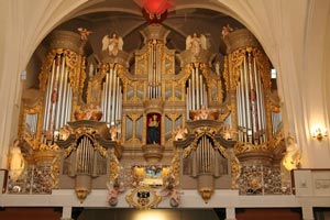 При этом художественные возможности комплекса впечатляют своим многообразием. Достаточно назвать хотя бы количественные показатели: большой орган имеет 90 регистров и около 6,5 тысяч труб, малый – 32 регистра и 2.224 трубы; инструменты оснащены новейшей электронной аппаратурой. Удивителен и внешний вид органов: большой орган выдержан в стиле барокко, прекрасно оформлен резьбой по дереву, позолотой, скульптурными украшениями (все это выполнено калининградскими мастерами фирмы «Максик»), малый орган представлен в современном академическом варианте. Кроме того в зале Кафедрального собора находится лучший в регионе рояль фирмы «Steinway» и прекрасный клавесин фирмы «Hass». На большой сцене зала часто выступают симфонические оркестры г.Москвы, г.Санкт-Петербурга, г.Екатеринбурга, г.Калининграда, а также зарубежные оркестры. Концерты проходят по субботам или воскресеньям в 18:00, программа концертовпредставлена в Календаре событий на 2011 год. Также в соборе 2-3 раза в неделю проходят дневные органные мини – концерты в рамках программы и по предварительному заказу. Со всем достоянием собора можно познакомиться во время тематических экскурсий, которые проводятся ежедневно без выходных с 10:00 до 17:00 по адресу: г. Калининград, ул. Канта, 1. |