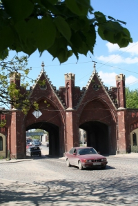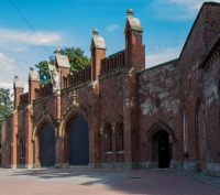 Городские ворота «Бранденбургские» Статус: Объект культурного наследия федерального значения Адрес: г. Калининград, ул.Багратиона, 137 Год постройки: XIX в. Бранденбургские кирпичные ворота Кенигсберга были построены по приказу короля Фридриха II вместо старых деревянных ворот, во время реставрационных работ 1843 года ворота были значительно перестроены и украшены остроконечными декоративными фронтонами, крестообразными цветами из песчаника, стилизованными листьями на навершиях, гербами и медальонами. Проект фасада выполнен архитектором Фридрихом Августом Штюлером. На Бранденбургских воротах установлены скульптурные портреты работы Вильгельма Людвига Штюрмера: военного министра фельдмаршала фон Бойена (1771-1848) слева, справа - шефа инженерного корпуса генерал-лейтенанта Эрнста фон Астера (1778-1855). В соответствии с Постановлением Совета Министров РСФСР от 30 августа 1960 года № 1327 Бранденбургские ворота подлежат государственной охране, ныне являются объектом культурного наследия Калининградской области федерального значения. Бранденбургские - единственные ворота города, использующиеся по прямому назначению до настоящего времени. Информация и фото - http://www.prussia39.ru/