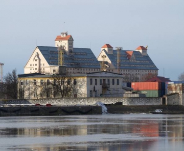 Статус: Объект культурного наследия местного (муниципального) значения Адрес: г. Калининград, Правая набережная, 15 Здание вальцовой мельницы было построено примерно в 1890 г. Для того периода мельница являлась крупнейшим предприятием, предназначенным для размола зерна. Так, основным сырьем для вальцовой мельницы служило зерно ржи. Изготовленная мука экспортировалась, а отруби использовались в местных крестьянских хозяйствах. В период Второй мировой войны объект был поврежден. В первые послевоенные годы здание было восстановлено в числе важнейших объектов по обеспечению жизнедеятельности города. Особенности объекта, послужившие основанием для включения его в реестр объектов культурного наследия: лизены, ступенчатый портал, орнаментированные межэтажные, подоконные и венчающие карнизы, а также фриз в виде машикулей.