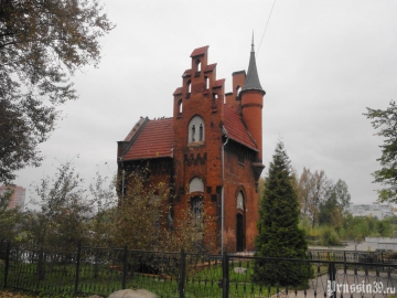 Статус: Объект культурного наследия регионального значения Адрес: г. Калининград, ул. Багратиона, 4 Дом смотрителя Высокого моста со смотровой башней, в котором находились подъёмные механизмы, построен в стиле неоготики в Кёнигсберге в 1899 году. Первый Высокий мост (Hohebr?cke), соединяющий районы Ломзе и Форштадт, был построен в 1520 году, в 1882 году он был перестроен. В 1938 году старый Высокий мост был демонтирован, а в нескольких десятках метров выше по течению Прегеля был возведен новый Высокий мост, сохранившийся до настоящего времени и имеющий разводную среднюю часть для прохода мачтовых судов. Напротив дома смотрителя сохранились каменные опоры разрушенного старого Высокого моста. Здание отреставрировано в 2000 году на средства частных компаний. Информация и фото – www.prussia39.ru