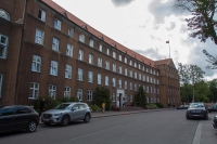 Монументальное четырехэтажное здание с высоким цокольным этажом, отделанным рустовочным камнем, возведено в стиле барокко в Кёнигсберге на Хуфеналлее в 1913-1917-х годах. Фасад декорирован скульптором Германом Тилем. В 1932 году с восточной стороны было пристроено дополнительное здание. В ходе восстановления в 1953 году здание утратило высокую вальмовую крышу над входом фасадного корпуса. В 2010 году крыша и декоративные украшения портала и фасада были отреставрированы. В настоящее время в здании размещается ФГОУ ВПО "Калининградский государственный технический университет".