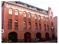 На рубеже веков в Кёнигсберге, в результате соединения малых общин, появилось пожарное объединение провинции Восточная Пруссия (теперь на ул. Фрунзе, 105). Впоследствии оно ведало вопросами пожарной охраны не только города, но и сельской местности. Здание этого общества из красного кирпича в виде буквы «Т» было построено в 1890-95 годах недалеко от Королевских ворот. Фасад изначально задумывался несимметричным: главный вход делит его на две неравные части (в левой – 9 оконных осей, в правой – на три меньше). Создается ощущение недостроенности всего дома.