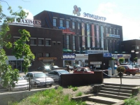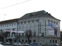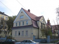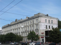 Трёхэтажный угловой дом у названного перекрёстка. Функциональное сооружение перестояло войну почти без повреждений, но при восстановлении был изменен его характер из-за оштукатуренного фасада.