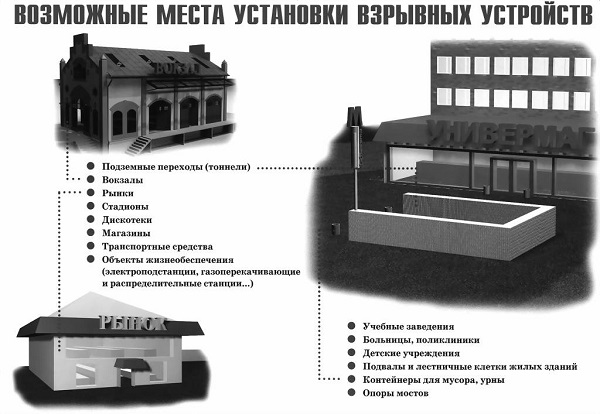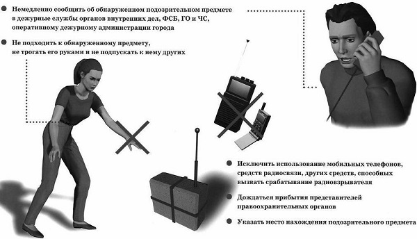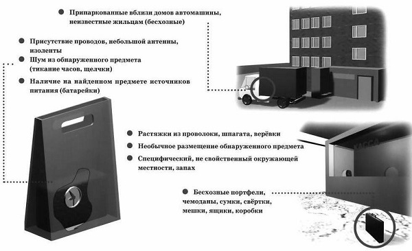 В качестве маскировки для взрывных устройств террористами могут использоваться обычные бытовые предметы: коробки, сумки, портфели, сигаретные пачки, мобильные телефоны, игрушки.