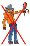 Производить запуск пиротехнических изделий в направлении людей, зданий и сооружений, а также в места возможного появления людей