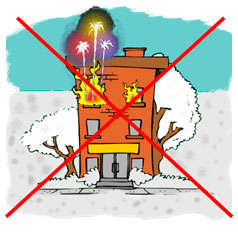 Использовать пиротехнические изделия вблизи зданий, сооружений, деревьев, линий электропередач и на расстоянии менее радиуса опасной зоны
