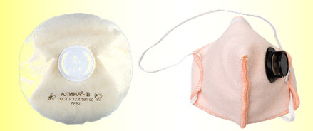 Газопылезащитные респираторы промышленного производства «Алина А», «Алина В», «Алина К», «Алина АВ»; «Нева В», «Нева К», «Нева ВК»; «Лепесток А», «Лепесток В», «Лепесток К» состоят из фильтрующей полумаски, изготовленной из полимерного волокнистого материала, с клапаном выдоха или без него. Респираторы, сравнению с фильтрующими противогазами, имеют меньшее время защитного действия, но достаточное, чтобы без вреда для здоровья покинуть зону заражения опасными химическими веществами, не требуют дополнительной подготовки.