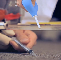 5. Более мелкие шарики втяните в резиновую грушу, а самые мелкие - наклейте на лейкопластырь.
