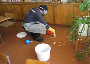 Обработку полового покрытия проводите на улице в следующей последовательности: