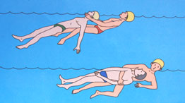 - при погружении человека на дно возьмите его за волосы и, резко оттолкнувшись от дна, всплывайте на поверхность.