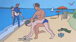 - после этого уложите пострадавшего на спину и проведите искусственное дыхание и непрямой массаж сердца.