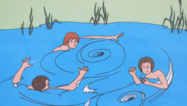 Оказавшись в водовороте, следует набрать больше воздуха, погрузиться в воду и, сделав сильный рывок в сторону по течению, всплыть на поверхность.