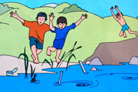 Опасно прыгать (нырять) в воду в неизвестном месте - можно удариться головой о грунт, корягу, сваю и т.п.