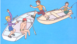 Ни в коем случае нельзя садиться на борт лодки, пересаживаться с одного места на другое, переходить с одной лодки на другую, а также раскачивать лодку и нырять с нее.