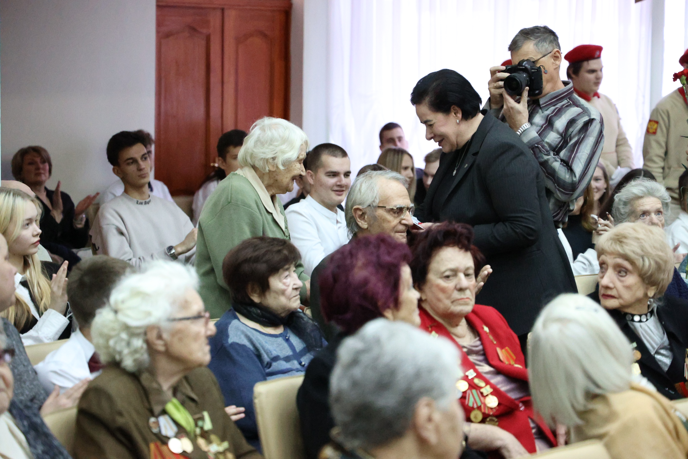 Приветствуя гостей, Елена Дятлова отметила, что 872 дня обороны – это пример мужества и героизма жителей Ленинграда. «Вашему поколению пришлось пережить и выстоять дни обороны города. На вашу долю выпало самое сложное – восстанавливать города из руин, воспитывать детей и передавать им память о войне, о победе нашего великого народа. Сегодня слова благодарности нашим ребятам, которые помнят - читают стихи о войне, поют песни. Дорогие ветераны! Самые искренние пожелания счастья и здоровья, мира, долгих лет жизни, внимания и любви ваших близких», - сказала Елена Дятлова.