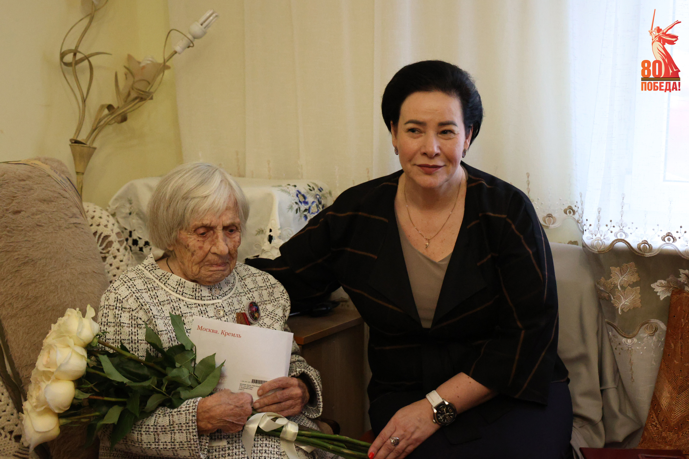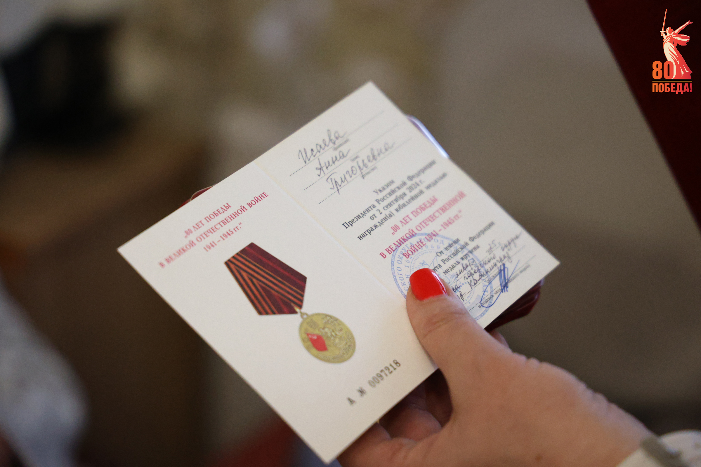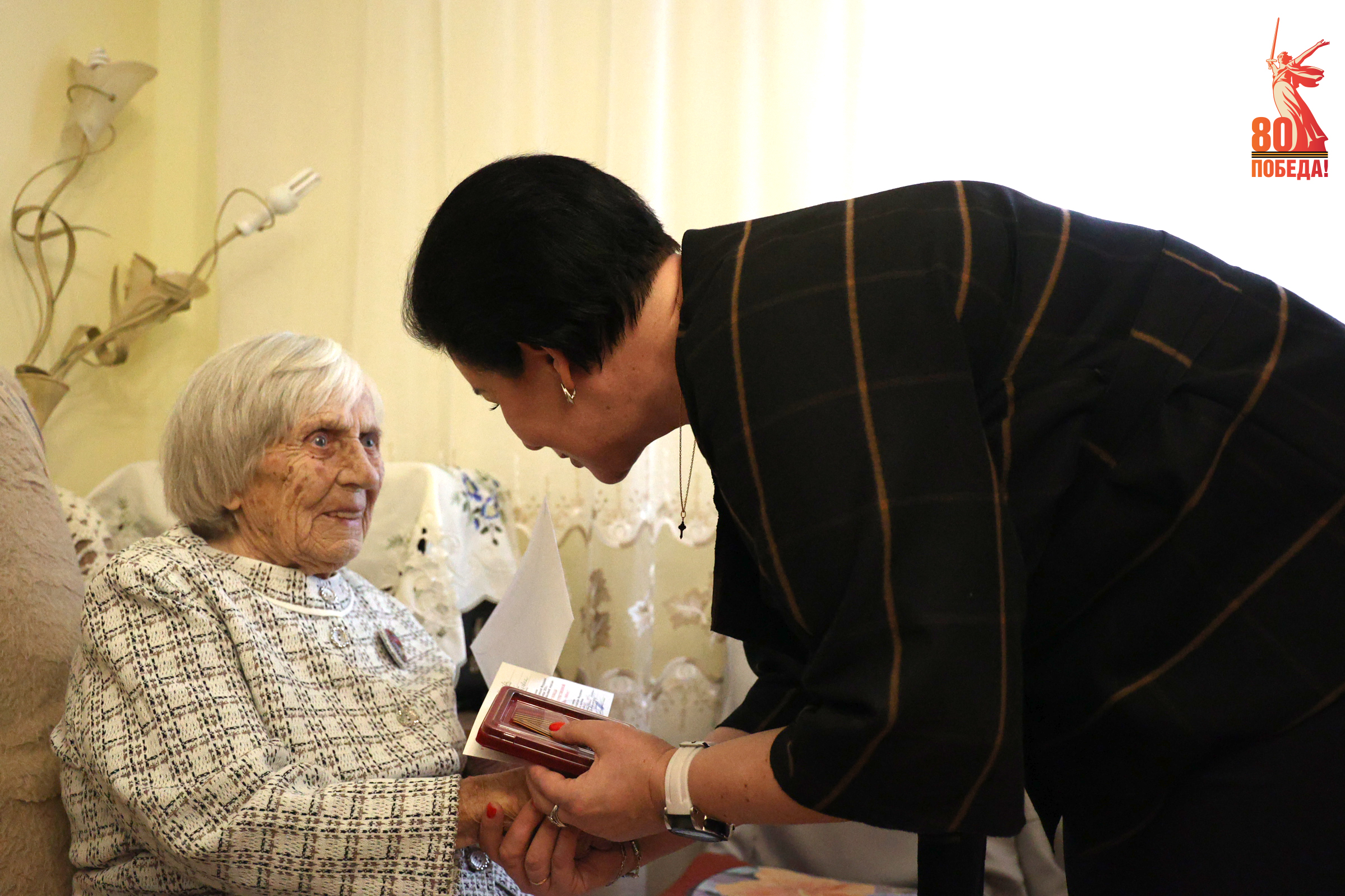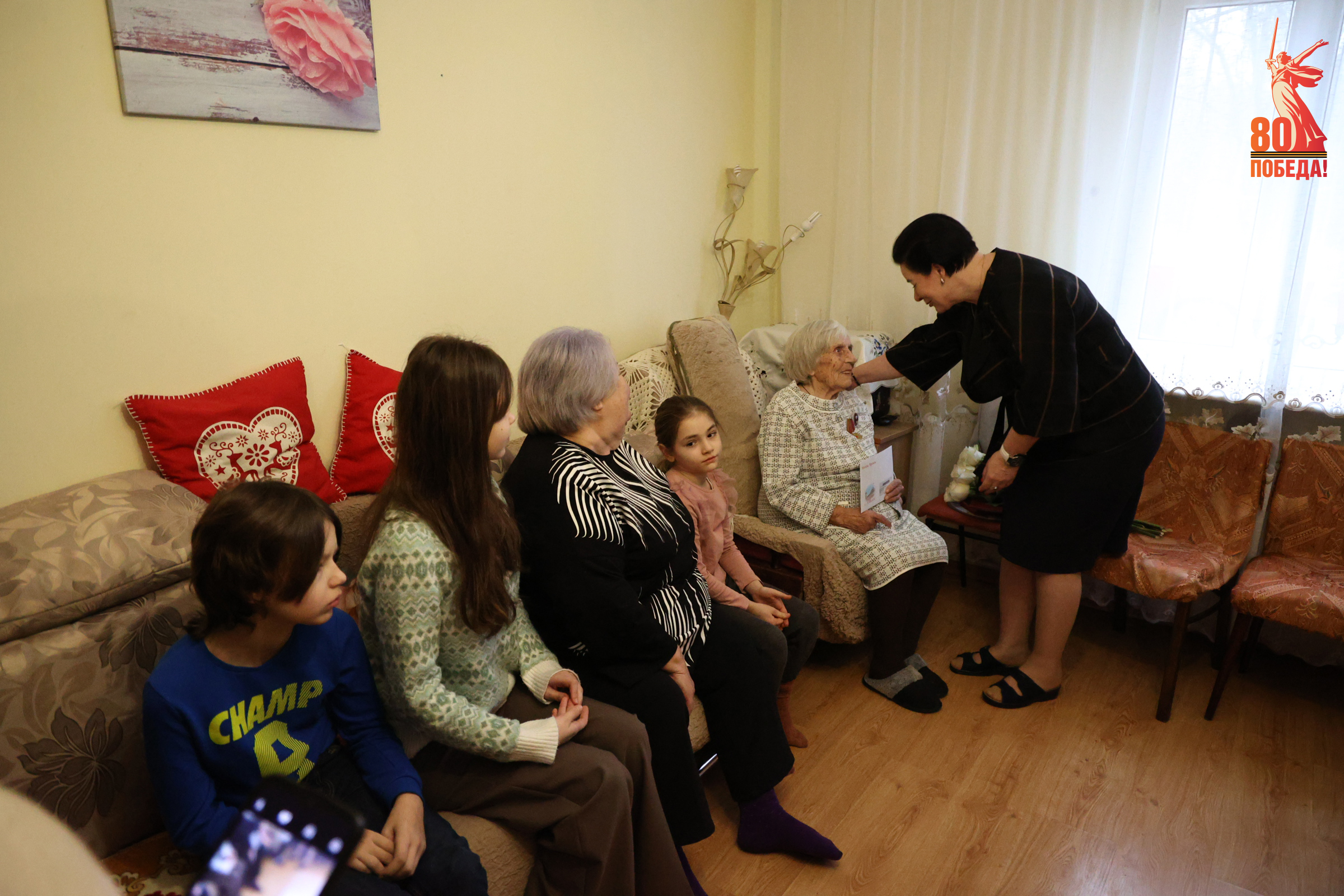 Со словами благодарности за доблестный труд и теплыми пожеланиями юбиляршу поздравила Елена Дятлова. Она вручила именное письмо от Президента РФ, ценные подарки и юбилейную медаль Победы. В год 80-летия Победы в Великой Отечественной войне все участники и ветераны войны Указом Президента России Владимира Владимировича Путина награждены юбилейными медалями.