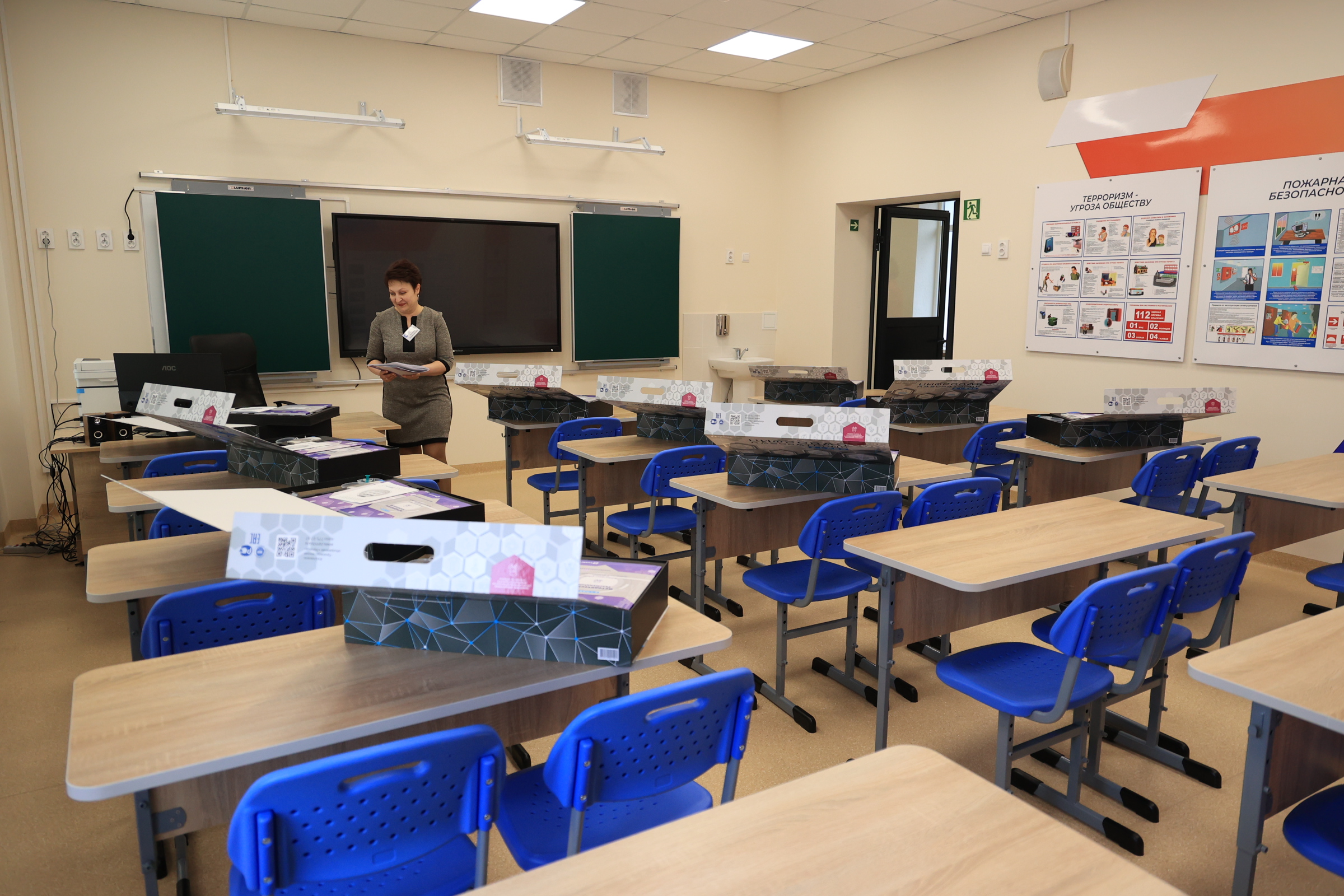 В ходе комплексного капитального ремонта выполнили ремонт кровли и фасада, обновили учебные кабинеты, обеденный зал и помещения пищеблока, спортивный и актовый залы, гардероб и библиотечный центр, внутренние инженерные сети и системы, медицинский блок, а также обустроили центр детских инициатив. За счёт средств национального проекта закупили мебель и учебное оборудование для специализированных кабинетов химии, биологии, физики и труда.