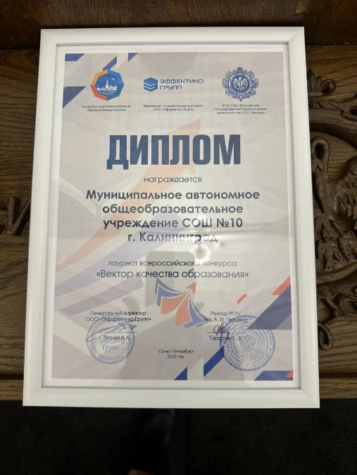 Администрация ГО "Город Калининград". Школа № 10 – призер Всероссийского конкурса «Вектор качества образования»