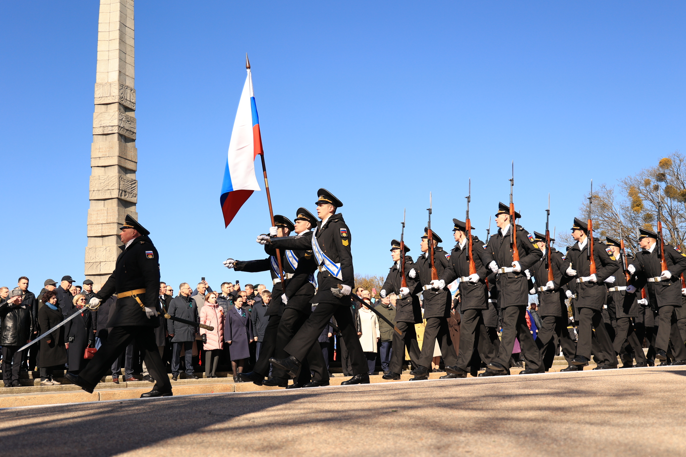 По многолетней традиции церемония возложения венков и цветов завершилась прохождением торжественным маршем роты почетного караула и оркестра Балтийского флота.