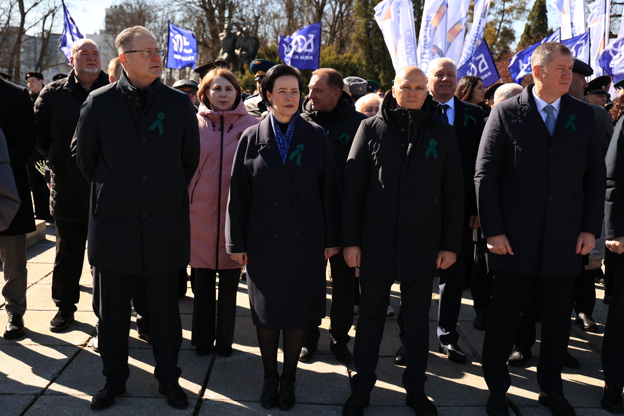 В церемонии возложения венков и цветов к мемориалу приняли участие губернатор Калининградской области Алексей Беспрозванных, глава администрации Калининграда Елена Дятлова, глава городского округа Олег Аминов, представители командования Балтийским флотом, руководители территориальных федеральных органов власти, депутаты, ветераны, представители общественных и молодежных организаций, учащиеся калининградских школ, представители политических партий, студенты, жители и гости города.